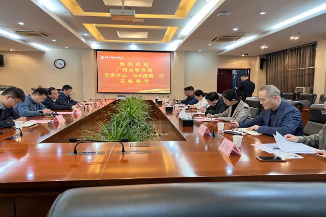 3月7日下午,广州市教育局党委书记、局长陈爽一行来必赢官网考察调研。党委书记吴学敏,党委副书记王伟以及党委办公室、校长办公室、发展规划处、机械工程学院等部门负责同志在行政楼辅楼一楼会议室接待了来宾。
