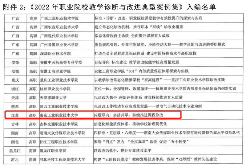 近日,中国教育科学研究院、职业教育与继续教育研究所发布了《关于展示2022年职业院校教学诊断与改进典型案例的通知》,必赢官网提交的双创课程诊改案例---《问题导向,多措并举,持续推进课程诊改》入编《2022年职业院校教学诊断与改进典型案例集》。