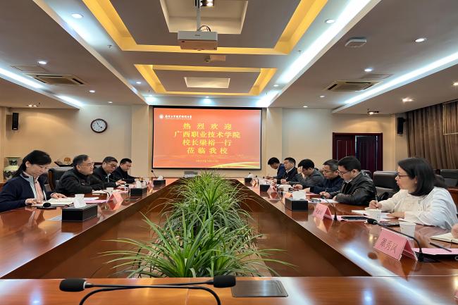 3月23日上午,广西职业技术学院校长梁裕一行来必赢官网考察调研。党委常委、副校长潘旭海以及教务处、科技处和机械工程学院的负责同志在仙林校区行政楼辅楼一楼会议室接待了来宾。