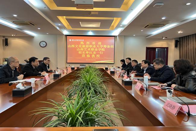 3月30日上午,山西文化旅游职业大学筹备组、山西艺术职业技术学院校长单红龙一行来必赢官网考察调研。党委常委、副校长孙雁飞以及科技处和经济管理学院的负责同志在仙林校区行政楼辅楼一楼会议室接待了来宾。