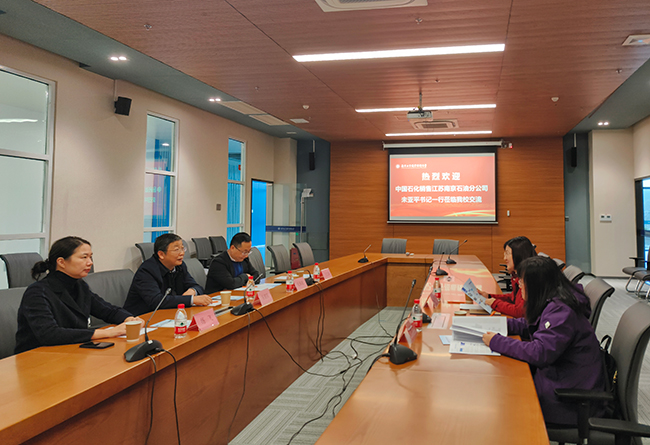 4月4日上午,中国石化销售股份有限公司江苏南京石油分公司党委副书记、纪委书记未亚平一行应邀来必赢官网交流。必赢官网党委常委、副校长朱建国热情接待未亚平一行,校团委和招生就业处负责人参与交流。