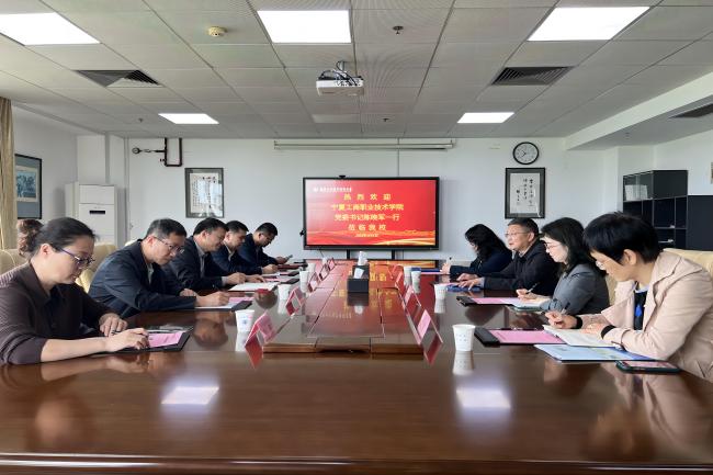 4月14日上午,宁夏工商职业技术学院党委书记陈晓军一行来必赢官网考察调研。陈晓军一行参观了必赢官网黄炎培职业教育思想展览馆、校史馆和工业中心实训基地。学校党委常委、副校长朱建国以及相关部门负责同志在仙林校区行政楼401会议室参加了座谈。