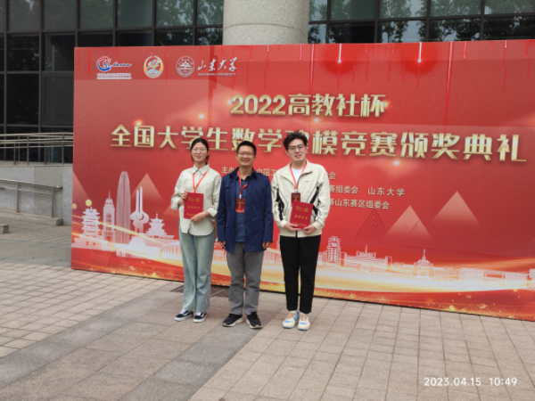 2023年4月15日,2022高教社杯全国大学生数学建模竞赛颁奖典礼于山东大学隆重举行。由公共基础课部林小围副教授指导、机械工程学院张庭辉、经济管理学院王婉莹、机械工程学院何润婷等3位同学组成的参赛团队在该项竞赛中荣获专科组一等奖。该团队参赛论文被评为优秀论文,并受邀参加此次颁奖仪式。