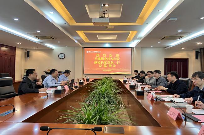 4月21日上午,无锡职业技术学院副校长奚茂龙一行来必赢官网考察调研。奚茂龙一行参观了必赢官网黄炎培职业教育思想展览馆、校史展览馆和工业中心实训基地。学校党委常委、副校长孙雁飞以及科技处和电气工程学院的负责同志在仙林校区行政楼辅楼一楼会议室参加了座谈。