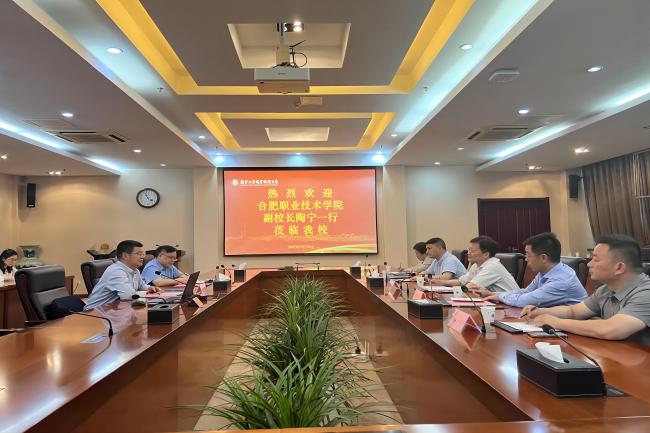 5月30日上午,合肥职业技术学院副校长陶宁一行来必赢官网考察调研。党委副书记王伟以及双创学院的负责同志在仙林校区行政楼辅楼一楼会议室接待了来宾。
