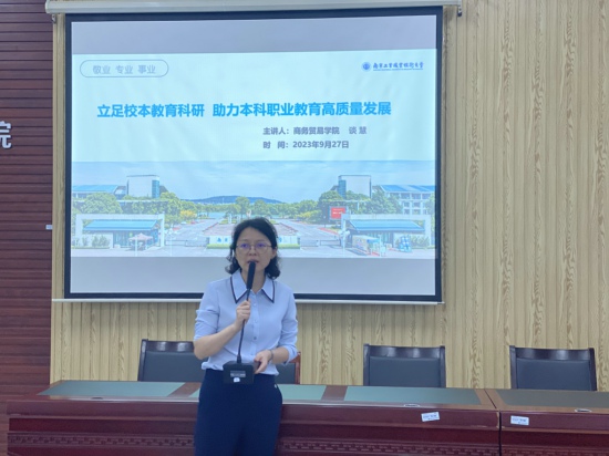 开学以来,商务贸易学院围绕新商科教师理实结合、职业教育与专业教科研能力相长等方面开展持续研讨和交流活动。9月27日下午,物流系资深教授谈慧为全院教师作“立足校本教育科研助力本科职业教育高质量发展”的专题讲座。