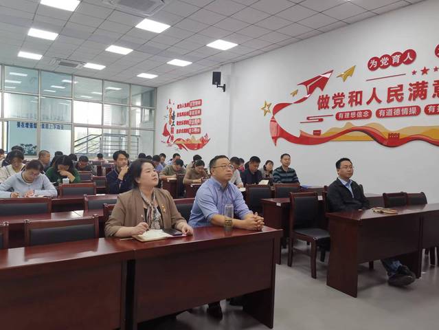 与会人员认真聆听何文秋师德师风报告场景