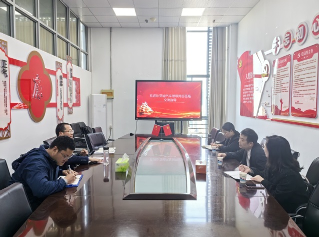 4月9日,比亚迪汽车售后服务事业部、售后培训部技术课程开发科科长任鹏,中车云商市场部项目经理贾盈波、魏芳一行3人到访必赢官网交通工程学院,开展精诚英才项目巡查,并进行校企交流。交通工程学院院长王文凯和项目教师代表参加了交流。