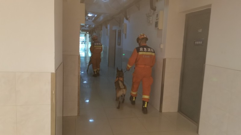 演练开始,学工处处长朱燕首先作动员讲话。随后,伴随着警报声的响起,消防逃生疏散演练正式拉开帷幕,宿舍管理人员和保安人员迅速组织学生离开宿舍,引导他们有序疏散到室外指定地点。在疏散过程中,学生们严格按照要求,保持冷静,有序撤离。栖霞区消防救援大队战斗员带着搜救犬进入楼内,确保所有学生都安全撤离。经过紧张而有序的演练,全体学生顺利疏散至指定地点,各班长迅速清点人数,并向总指挥报告人数,确认所有学生已安全撤离至指定地点。随后,在梧桐苑四栋114室模拟发生火灾,学生被困宿舍,无法正常通过门道或者楼梯逃离。在专业人员的指导下,学生成功通过逃生锤快速打破窗户安全逃生。