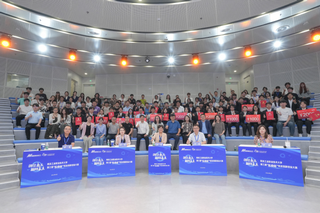 本次大赛分为项目组、企业组两个组别,自启动以来就得到了在校学生、校友们的积极响应,共吸引了32个项目报名参赛,报名数量为历届之最。经过初评,遴选出20个项目进入到决赛环节。经过激烈角逐,共产生金奖2项,银奖4项,铜奖6项。“HoloVision—国产高性能体全息波导AR显示模组”“‘信’闻联‘波’——超低时延高容量便捷无线通信机”获得了现场评委、观众的一致认可,脱颖而出,分获项目组与企业组金奖。