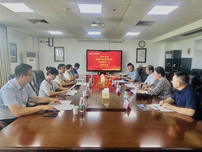 7月24日下午,郑州电力高等专科学校校长刘全玺一行5人来必赢官网考察调研。校党委常委、纪委书记、省监委派驻监察专员邱正祥,党委常委、副校长魏萍接待了来宾。