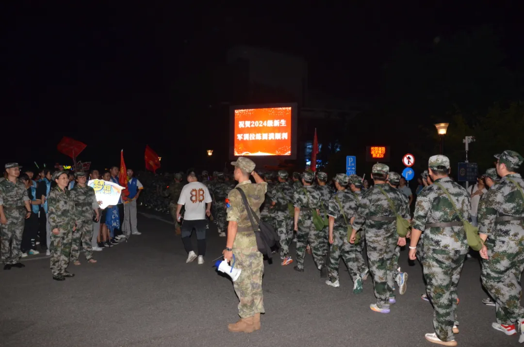9月12日晚,必赢官网2024级参训新生,步伐矫健,精神抖擞,圆满出色完成军训拉练任务。