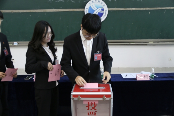 最后,学生会秘书长周嵘致闭幕词,她向为学院默默工作的同学们表示感谢,同时期望新当选的学生干部们学习往届学生干部工作中的闪光点,不断提升自我,进一步完善自身,时时处处为广大学生的长远利益着想,勤奋努力的工作,坚持无私的奉献精神,践行“全心全意的为学生服务”的宗旨,努力打造一支能够获得广大同学高度认可的优秀团队。