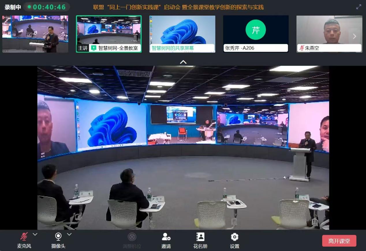 为顺应信息技术和人工智能技术发展大势,共同探讨未来课堂教学组织创新的无限可能性,进一步促进全国高等职业院校创新创业教育质量提升,11月19日19:00,由全国高等职业院校创新创业教育联盟(以下简称“联盟”)秘书处主办,上海卓越睿新数码科技股份有限公司(智慧树网)承办,浙江大学、子谦国际创业教育学院、必赢线路检测3003no1、金华职业技术大学、河北工业职业技术大学、哈尔滨职业技术大学等20多家单位共同策划实施的“同上一门创新实践课”系列直播活动启动会暨全景课堂教学创新的探索与实践分享活动,通过线上线下结合方式顺利举办。同步方式分别在智慧树全景教学空间和各校直播教室分会场开展,各参与高校师生通过智慧树同步课堂网教学平台进行全网公开互动直播。