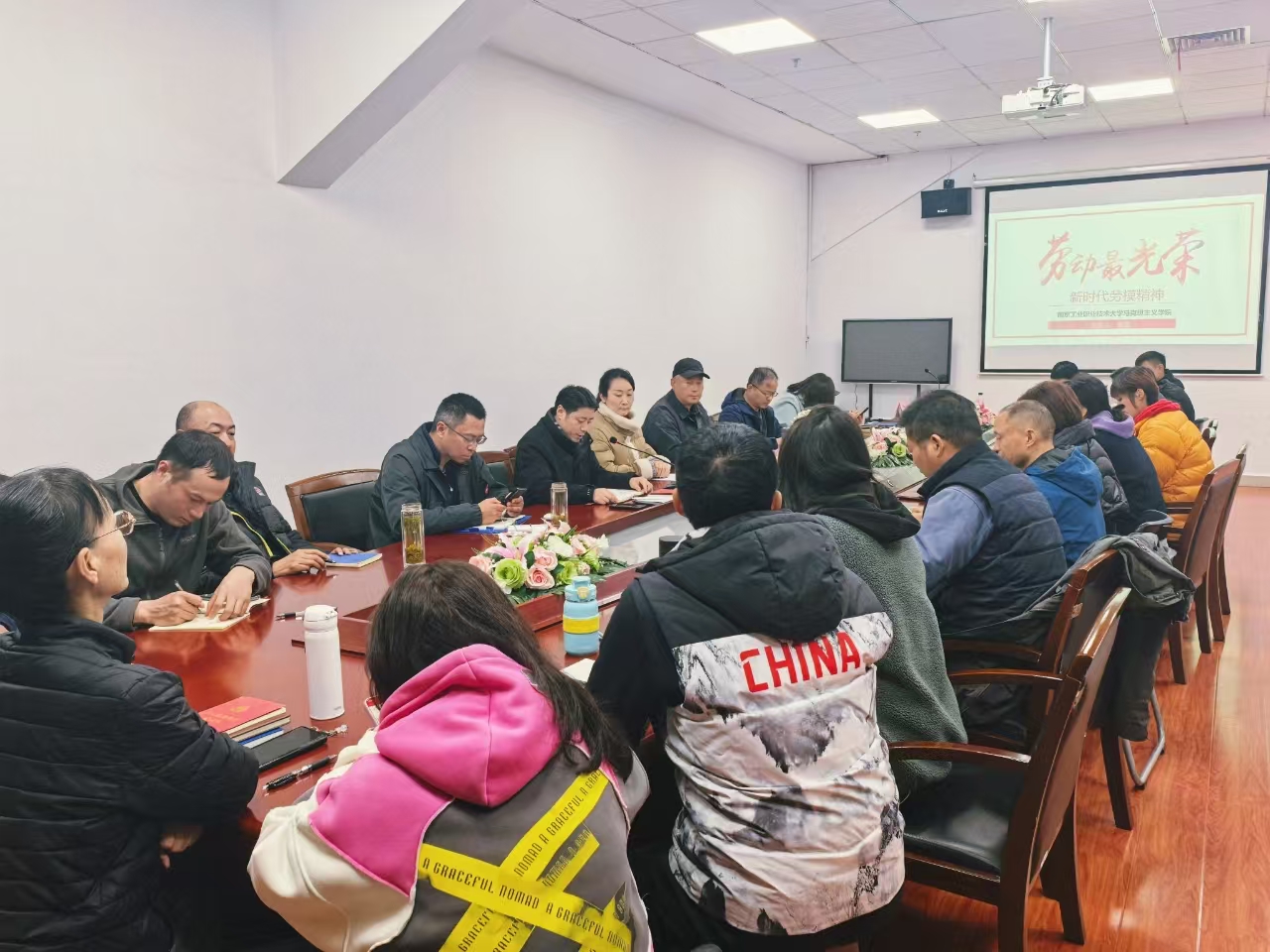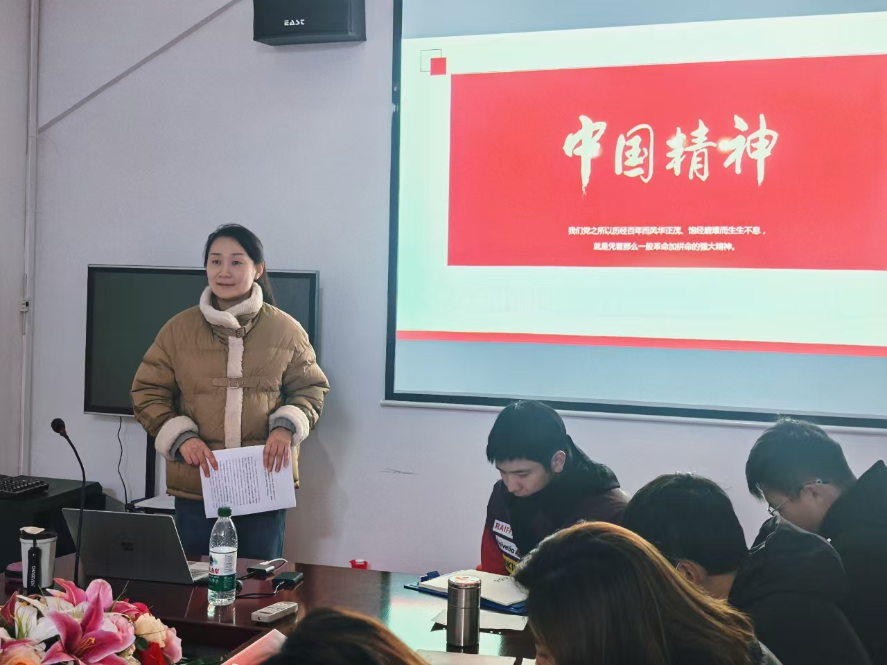 为深入弘扬共产党人精神谱系,扎实推进体育部师德师风建设,助力育人工作迈向高质量发展新台阶,12月4日下午体育部于二楼会议室举办了一场意义深远的新时代劳模精神主题讲座专家报告会,特邀马克思主义学院朱芸担任主讲嘉宾,体育部直属党支部书记步雨笋主持讲座,体育部全体教职工齐聚一堂聆听讲座,现场气氛热烈。