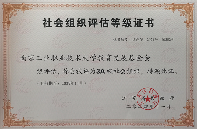自今年4月22日起,按照省民政厅《关于开展2024年度社会组织评估工作的通知》(苏社管〔2024〕6号)要求,在学校领导关心支持下,基金会秘书处协同相关部门,严格对照评估标准,系统梳理了相关制度文件、公益收支等材料,并于8月23日上报省民政厅。经资格审核、材料上报、线上初评、公示等环节,基金会最终获评3A等级。